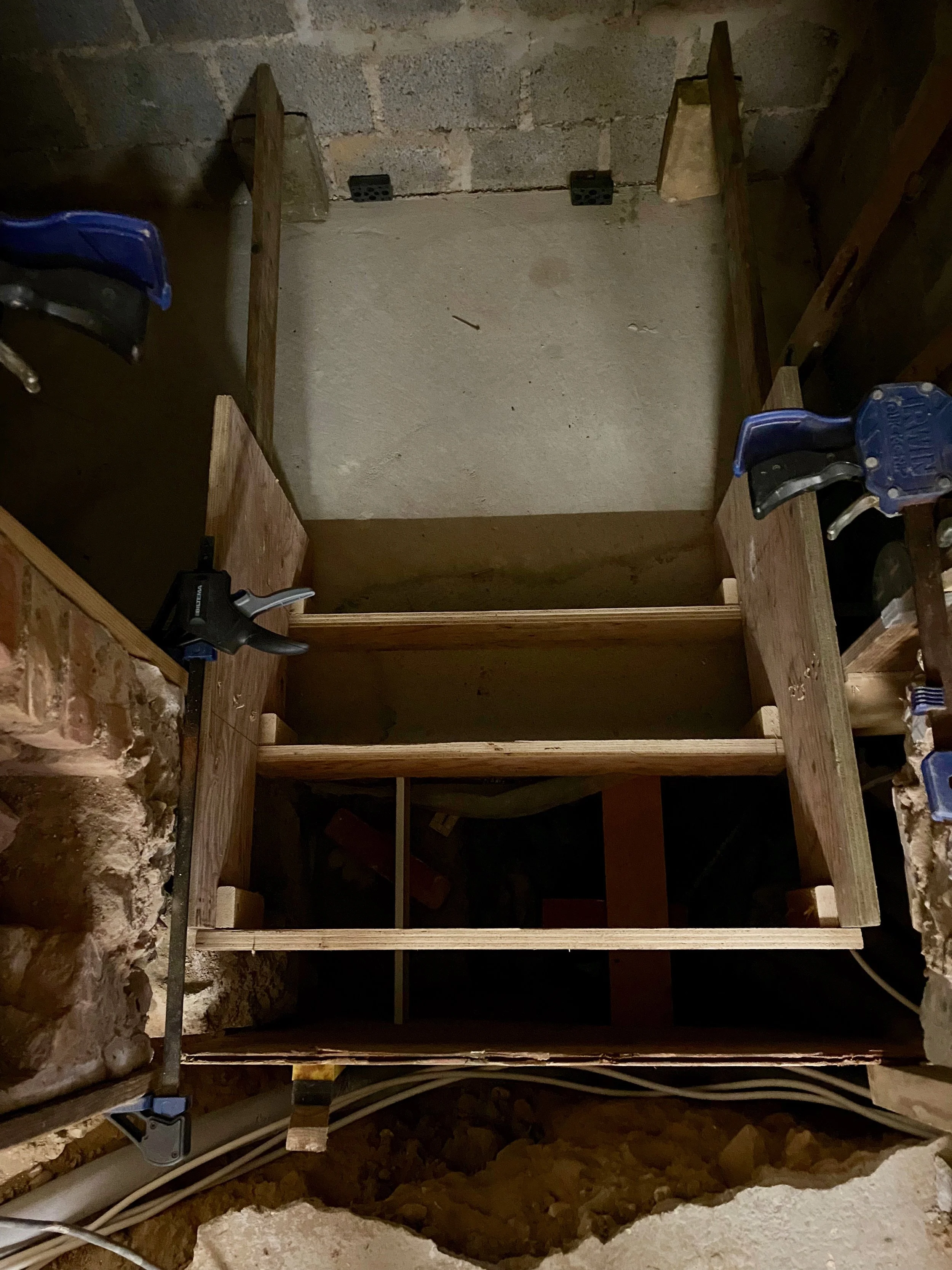 I vores nye tilbygning bliver der to eller trin ned til henholdsvis badeværelse og viktualierum i kælderen, men på grund af de forholdsvis små rum, kan vi ikke opfylde trappeformlen. Vi skal derfor finde et kompromis med enten to højere trin, eller tre lavere trin og en mindre trædeflade.