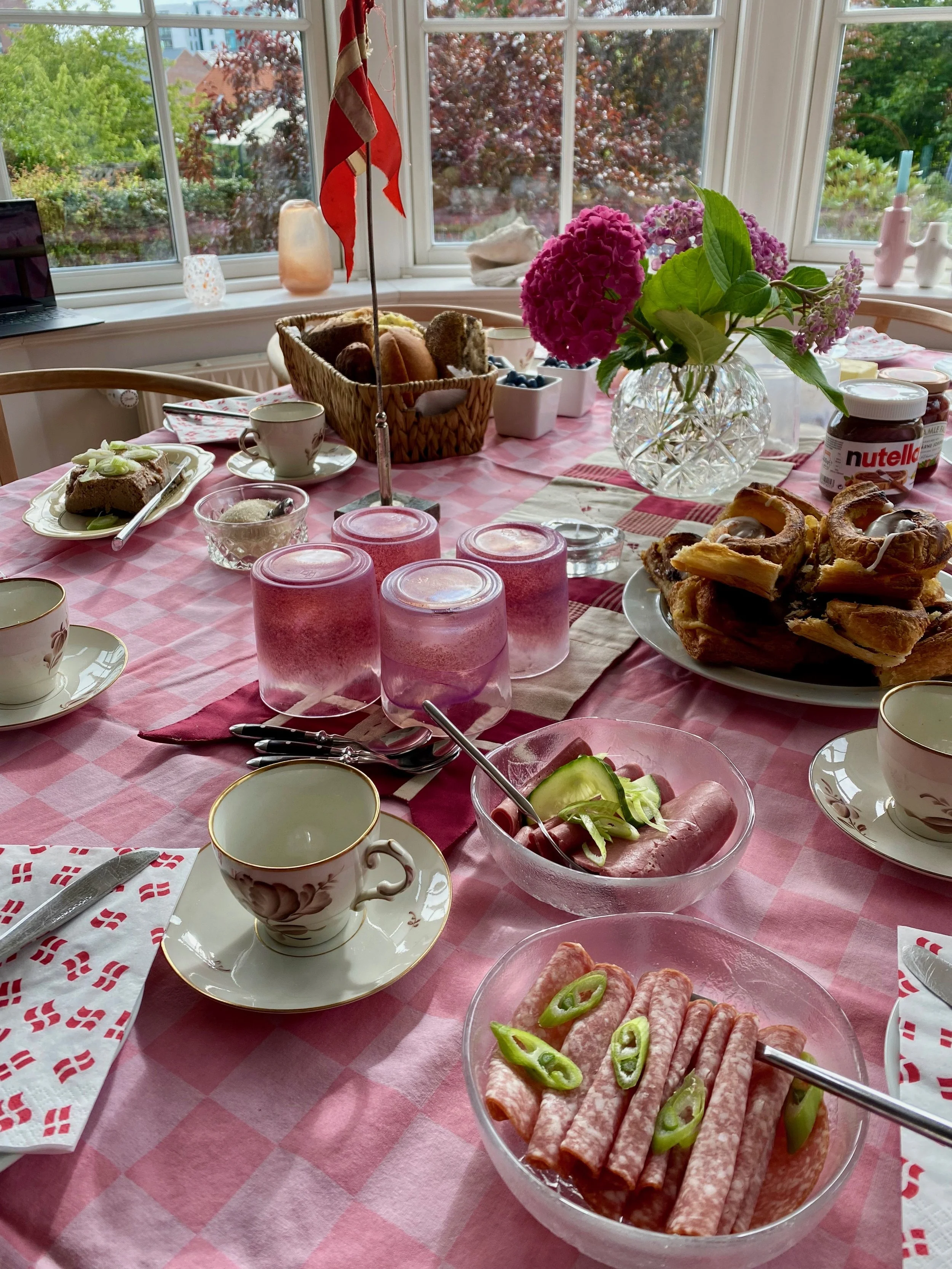 Den første gæst kom kl. 8.00 om morgenen, de næste kom til brunch kl. 9.30, hvor vi også havde familien fra NZ med på zoom. Det var dejligt, at de også kunne være med sådan en dag.