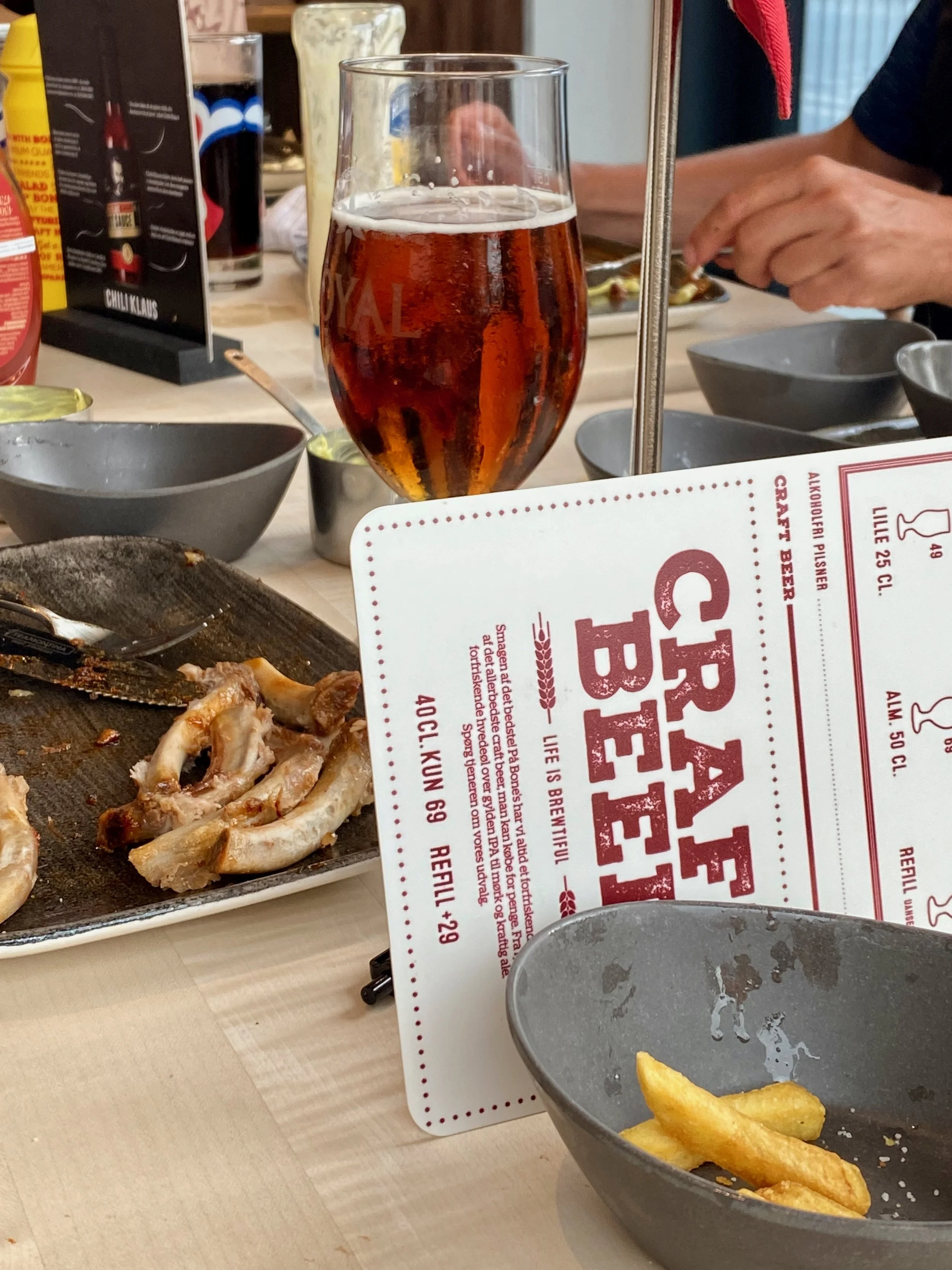kl. 17.15 spadserede vi sammen med børn og børnebørn ned til Restaurant Bones, hvor vi havde bestilt bord.