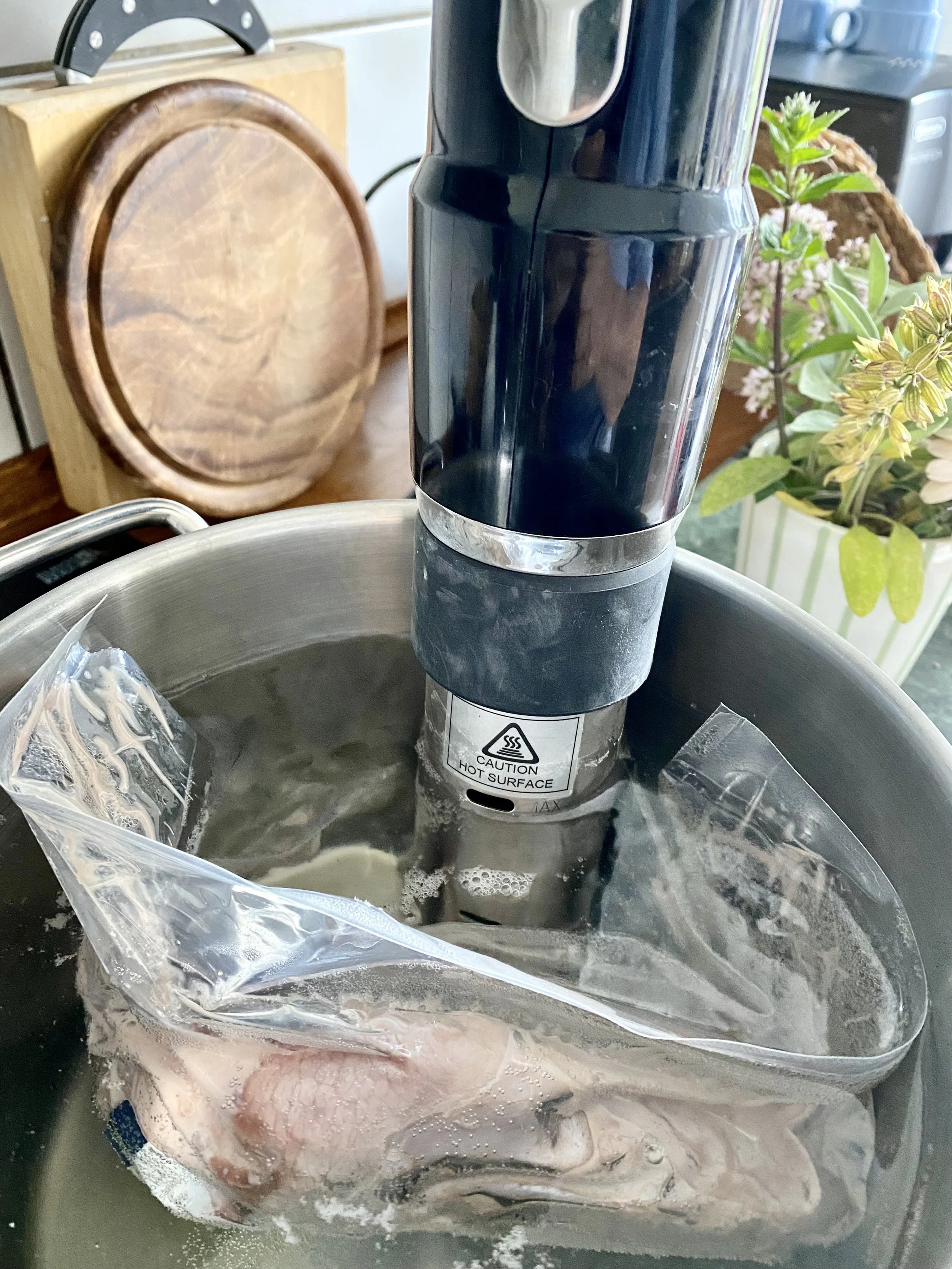 Tilberedningen passer sig selv i sousvieden, og kødet bliver vanvittig lækkert og mørt