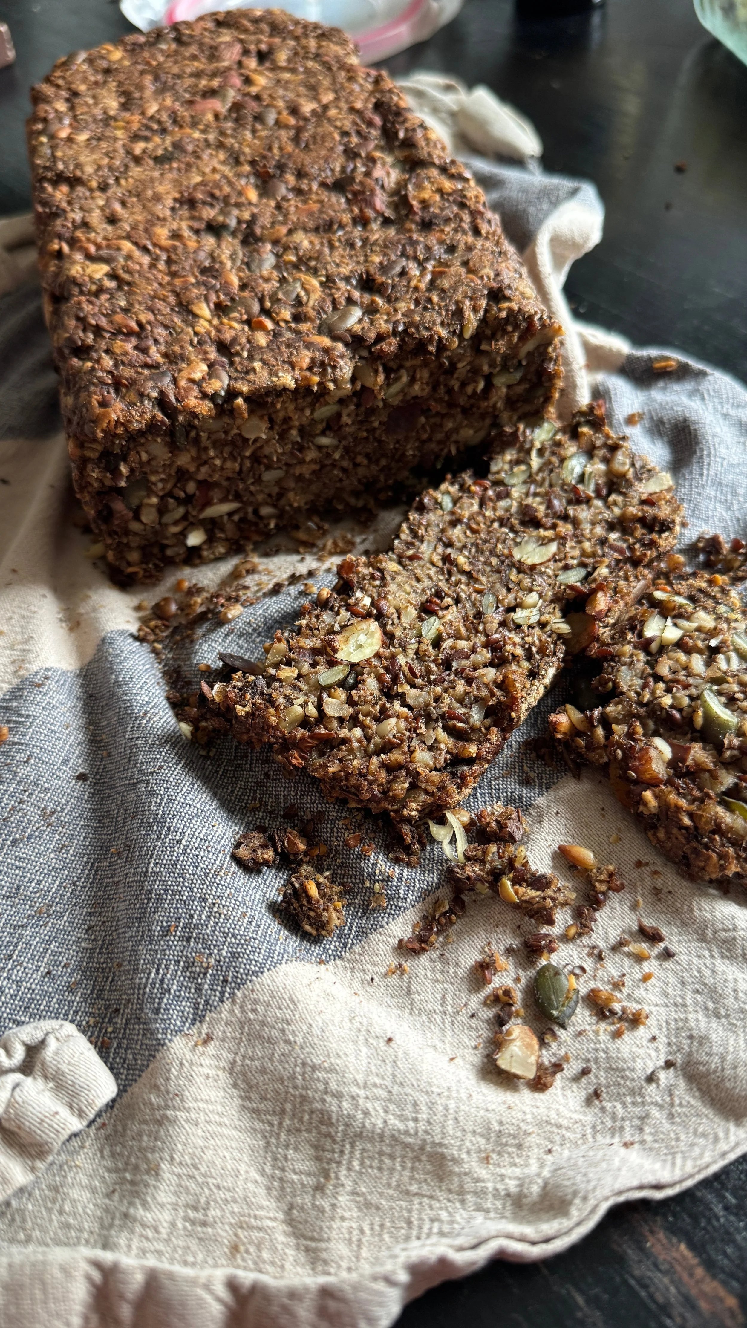 Jeg har fundet en opskrift på et rigtig godt alternativ til mit elskede rugbrød - nemlig et brød, der er bagt på frø og kerner.