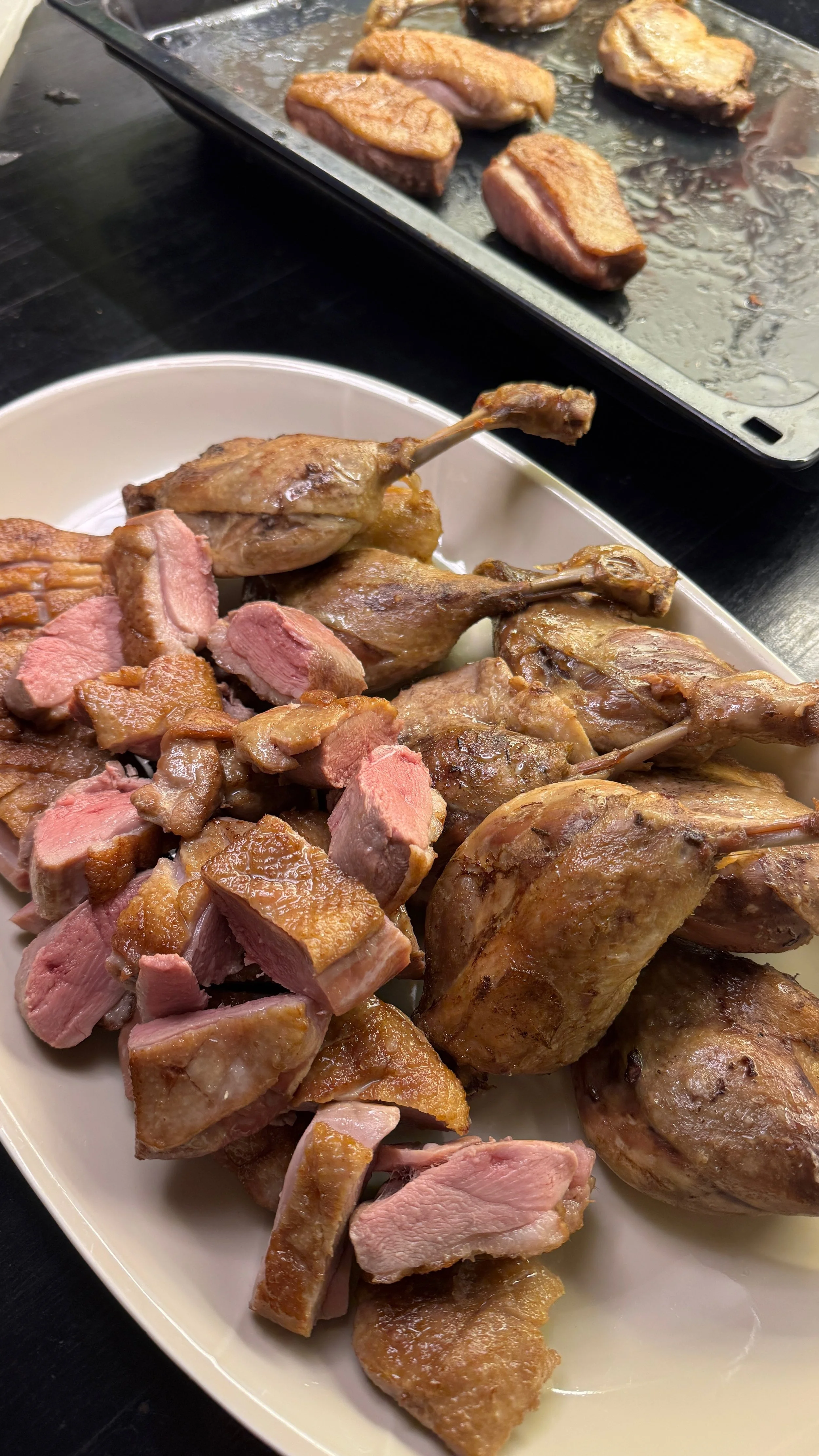 I min barndom fik vi altid fuglevildt, som min far selv havde skudt, og mors brune sovs, der kunne hænge ved kartoflerne, men efter at jeg har overtaget, får vi andebryst og ristede aspargeskartofler.