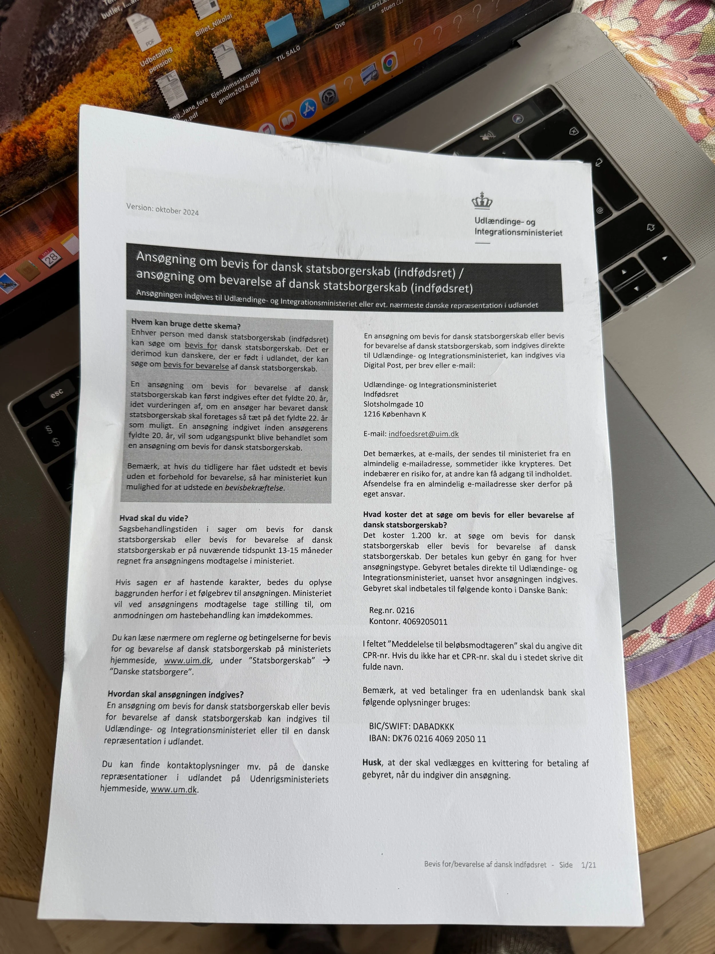 Så er der kun at udfylde siderne og få ansøgt om bevarelse af det danske statsborgerskab