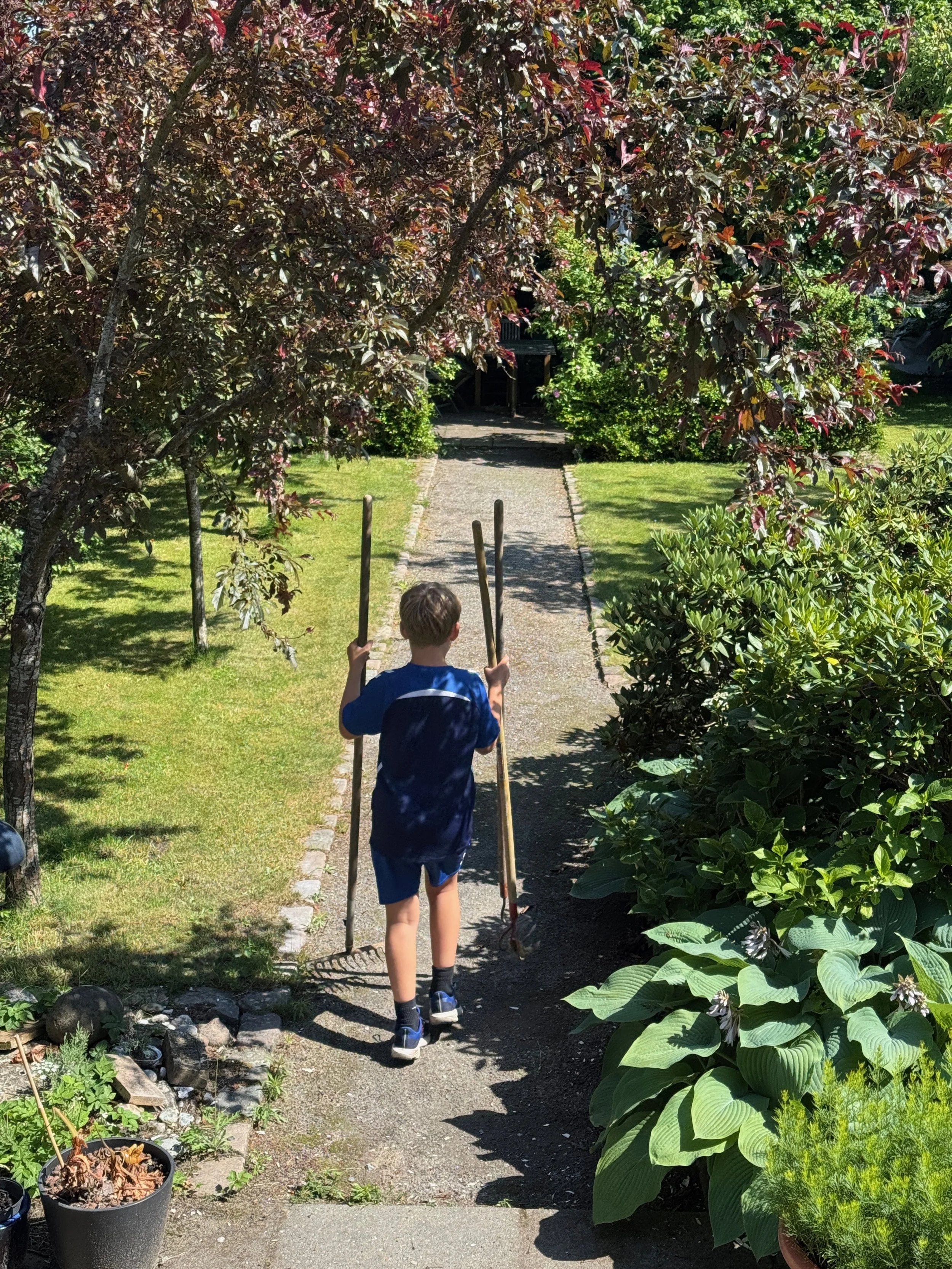 Han arbejdede flittigt og godt, og mens vi gik og hakkede, snakkede vi lidt om hans fødselsdag i næste uge, og hvad han ønsker sig.
