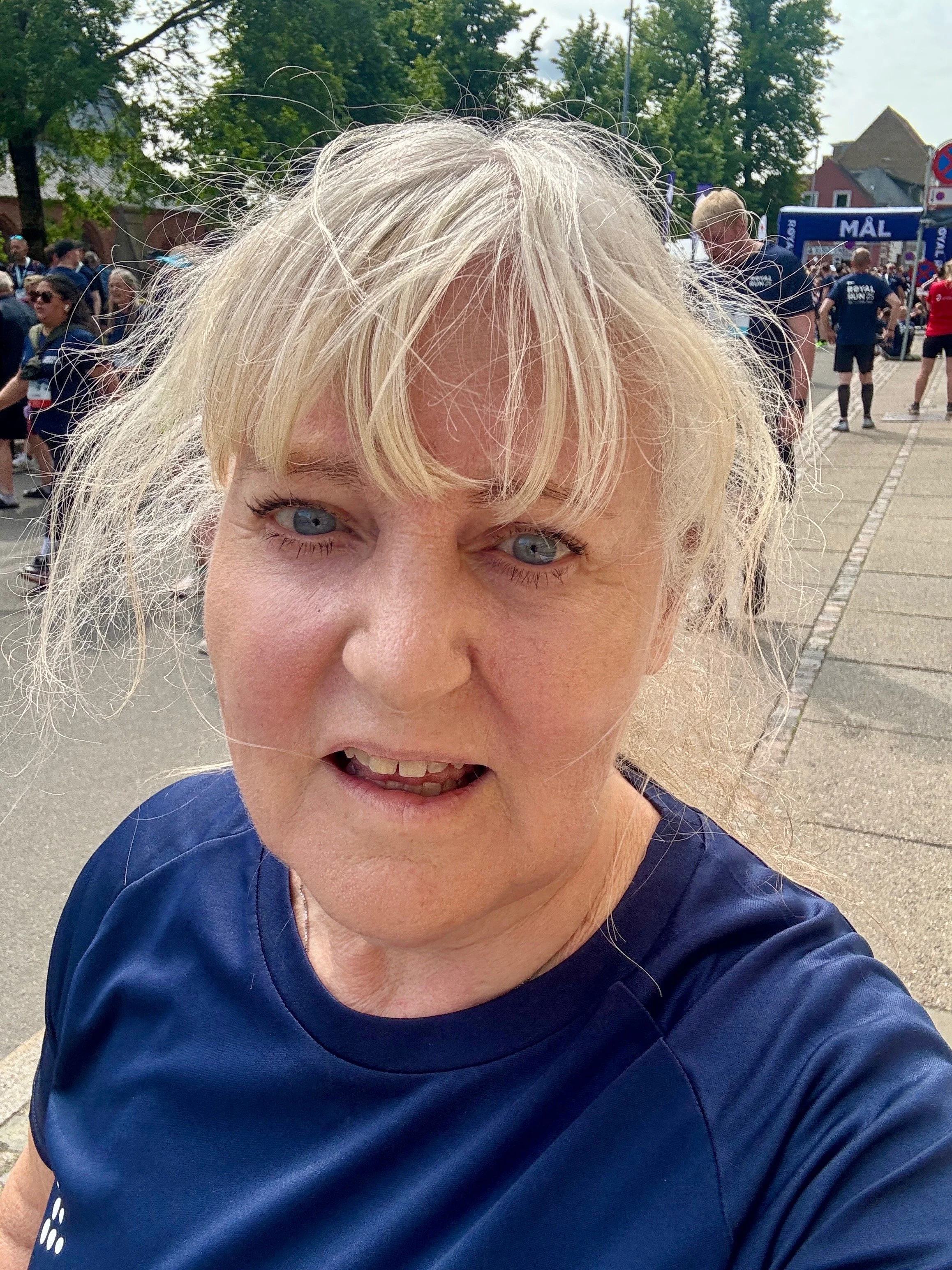 Det var hårdt at løbe, og jeg vekslede mellem gang og løb, men jeg gennemførte de 5 km og var selv tilfreds.