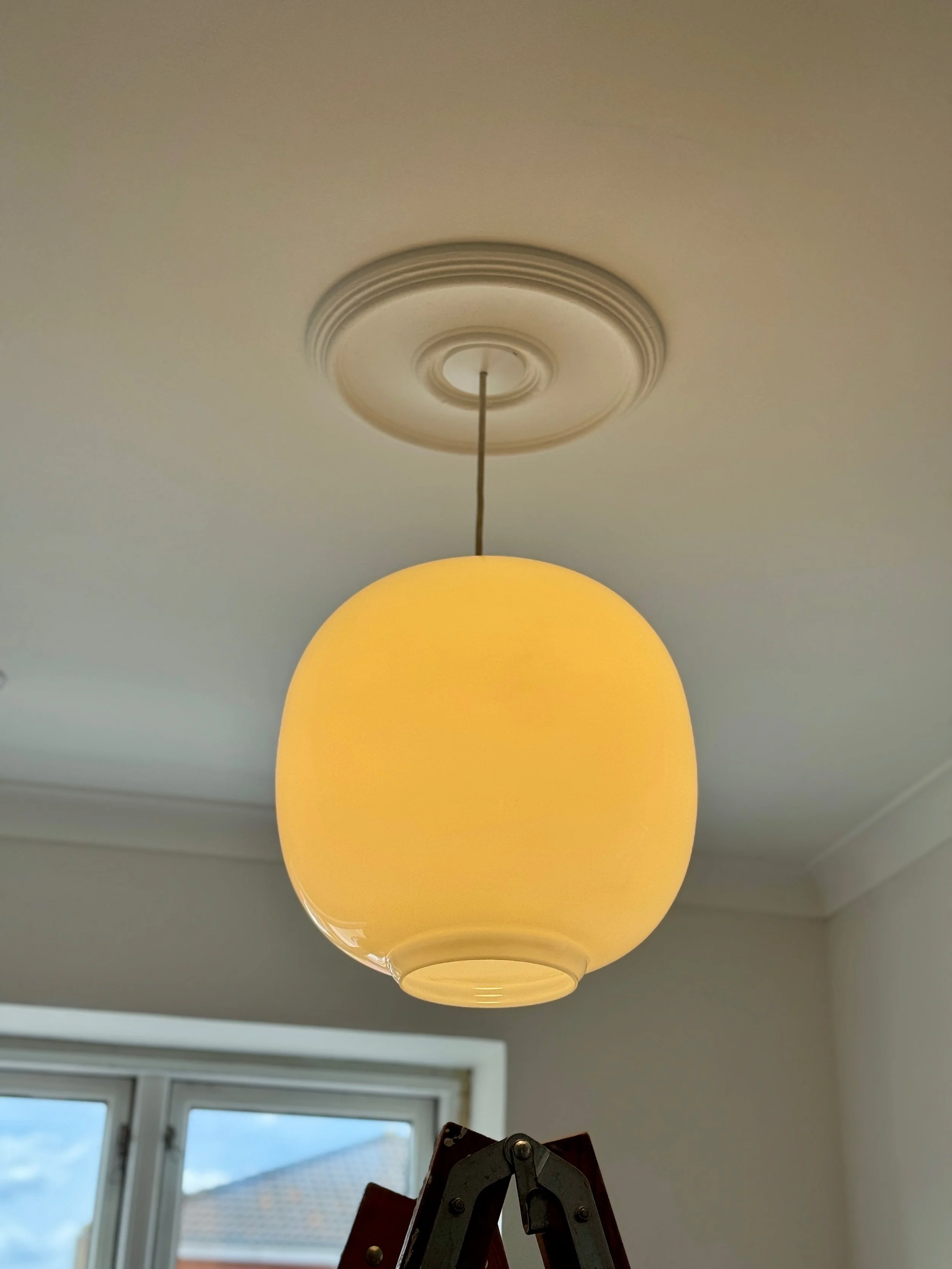 Så kom der lys i lampen i entréen.