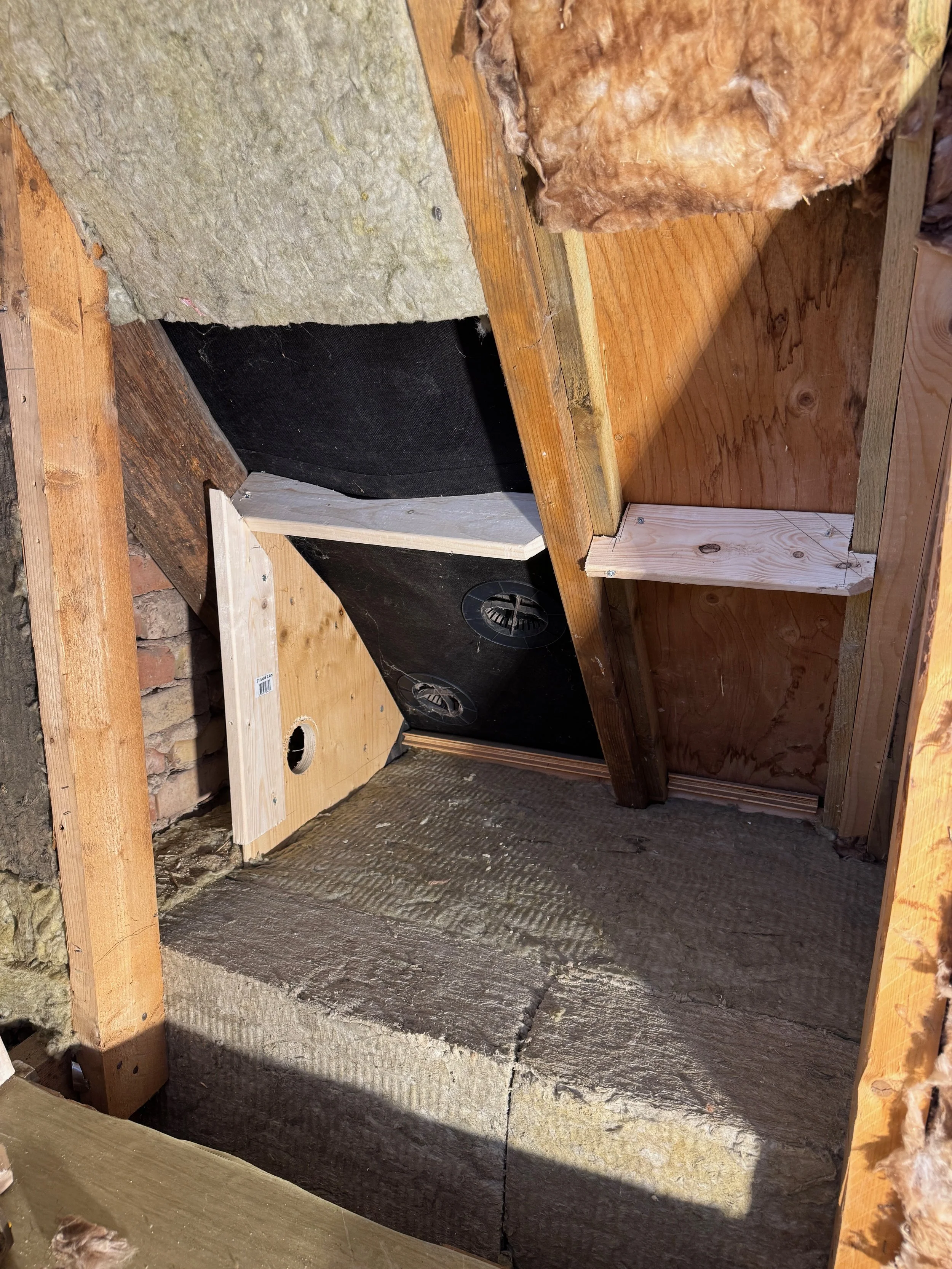 Der isoleres stadig på førstesalen, men alt går, som planlagt. Heldigvis er vi ved at være færdige med isoleringen, så der kan blive ryddet pænt op igen inden næste step, som er beklædning af væggene.