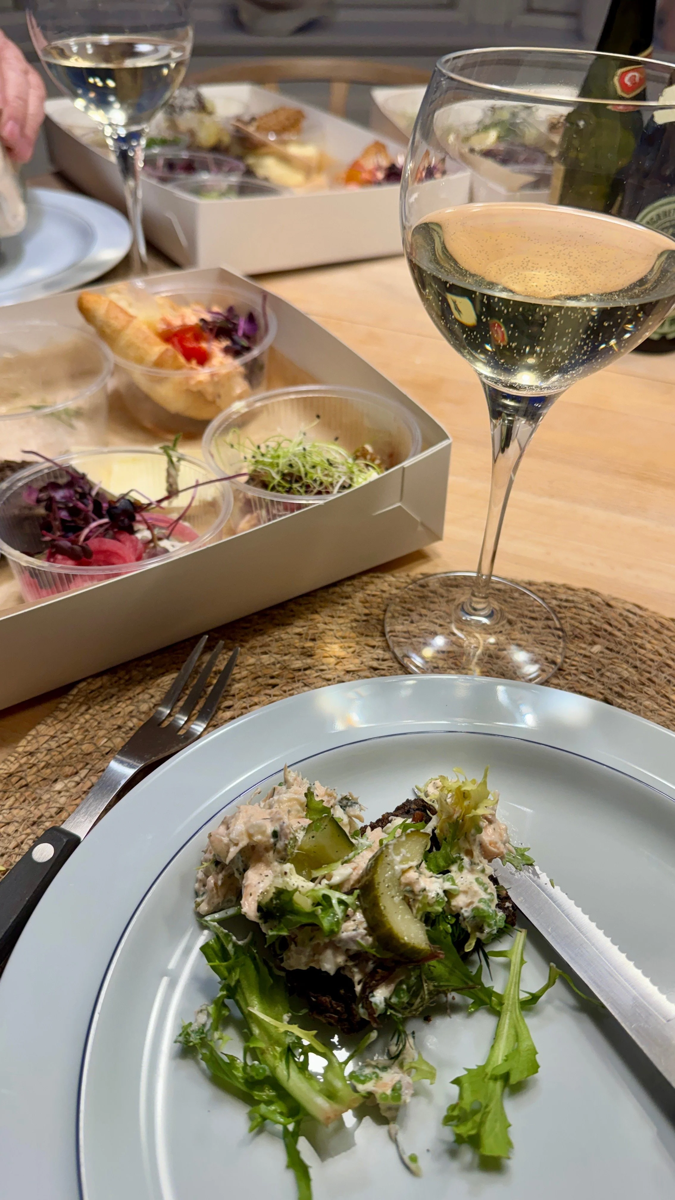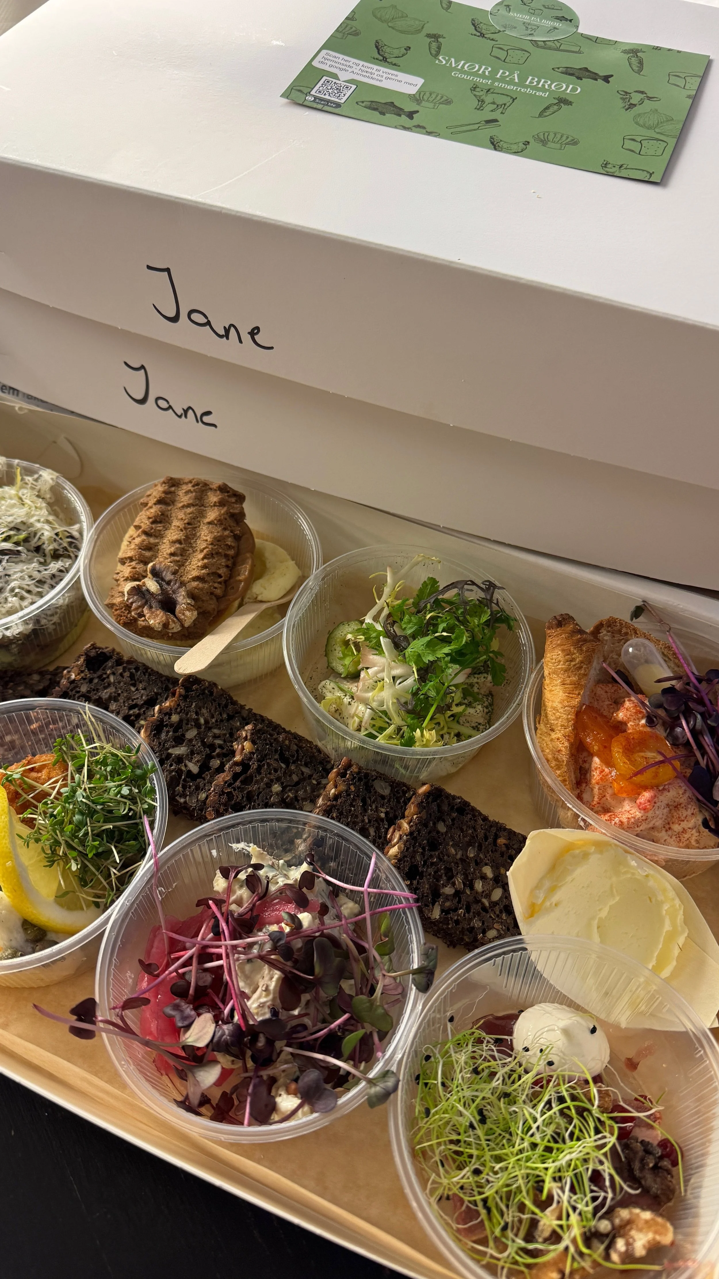 På hjemvejen hentede vi vores tapasanretning hos Smør på Brød, som laver de lækreste små retter.