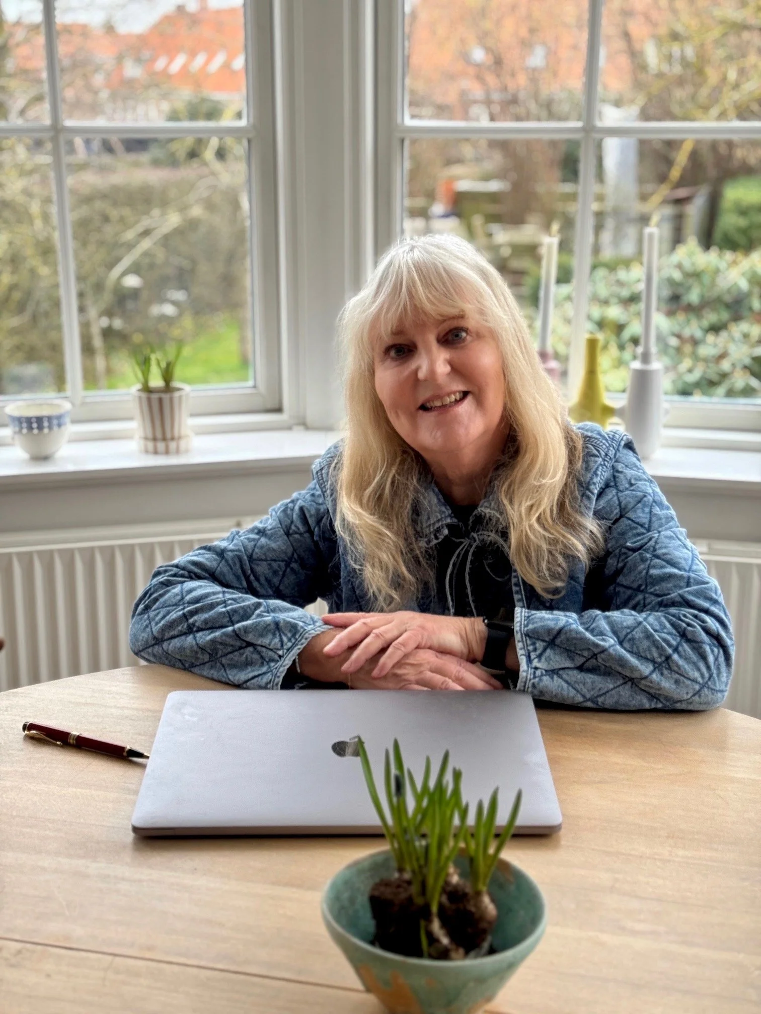 Jeg elsker lyset i min stue, hvor solen varmer gennem vinduerne i vores bue. Det er præcis her i buen ved det runde bord, alle mine blogindlæg bliver skabt - her i lyset og varmen og med udsigt til haven, som forandrer sig hele tiden.