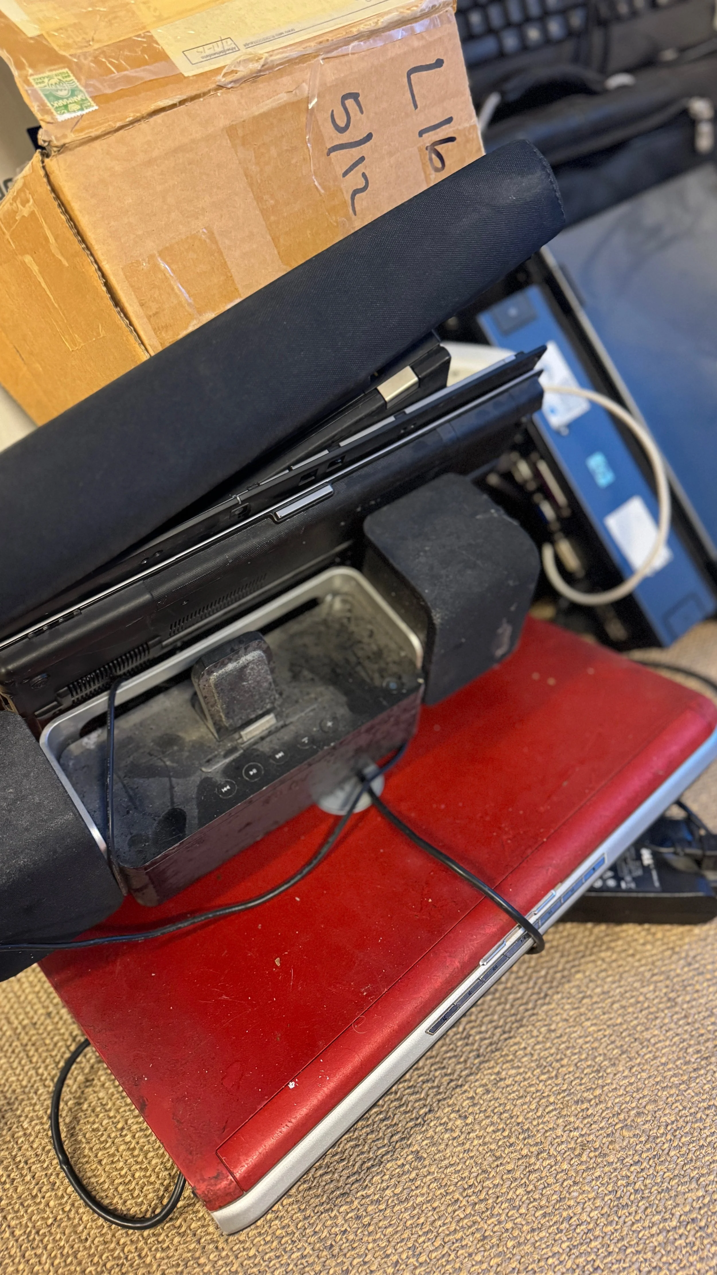 Den gamle røde bærbare har indbygget cd afspiller