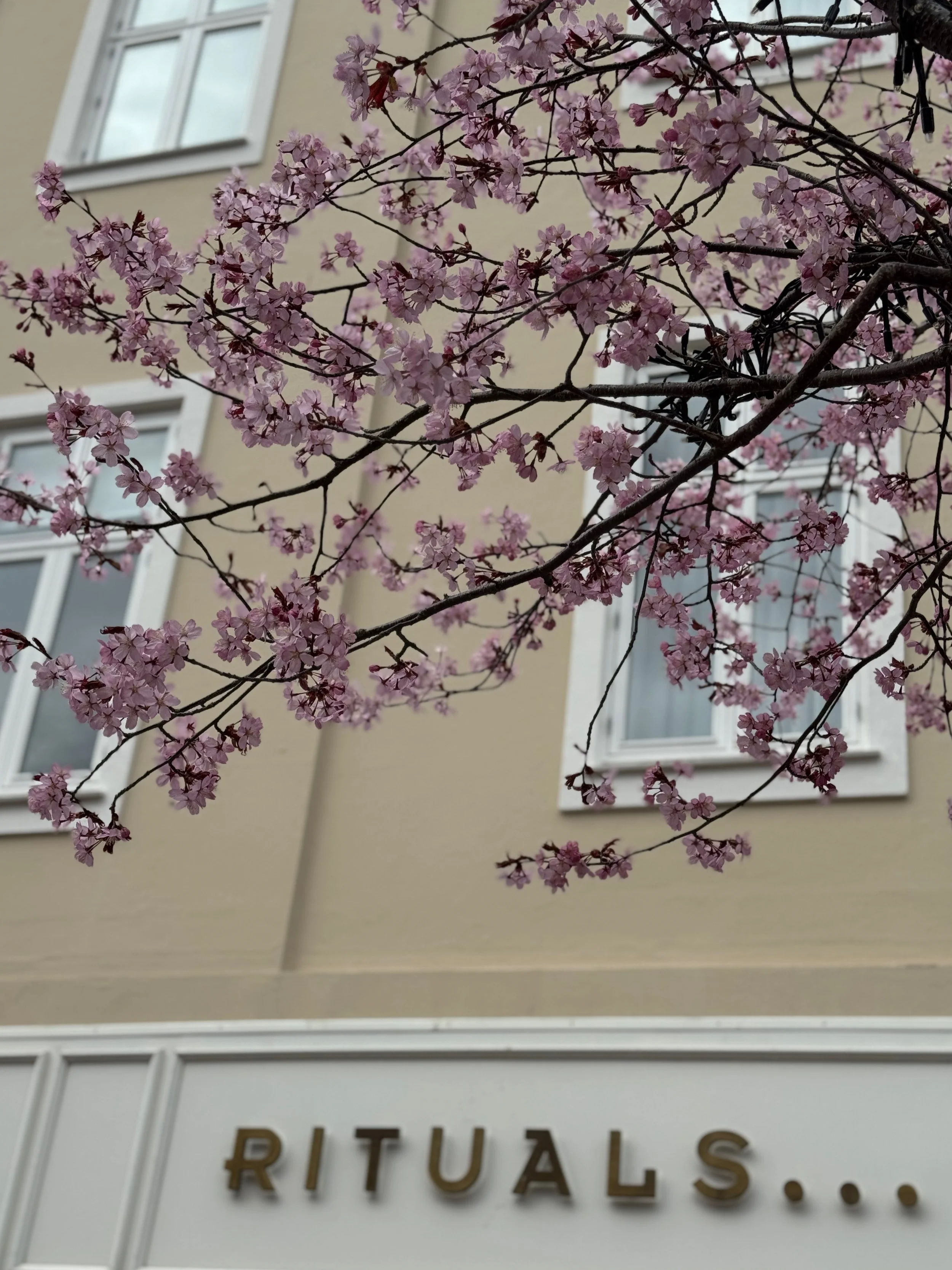 Japansk kirsebær stod i blomst lige udenfor en af mine yndlingsbutikker Rituals, og udendørs serveringen var i fuld gang på byens caféer.